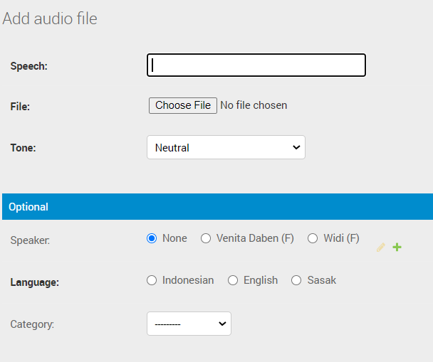 untuk menambah data bahasa default speakers, akan muncul form seperti berikut.