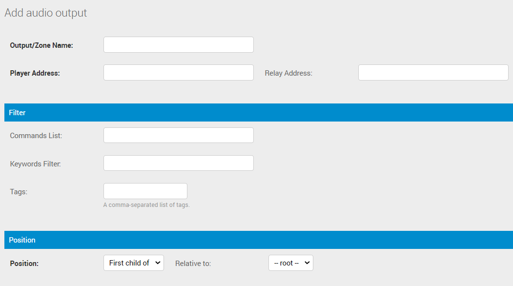 Position, digunakan untuk mengatur urutan posisi output/zona name, pada halaman adminsite Audio Outputs