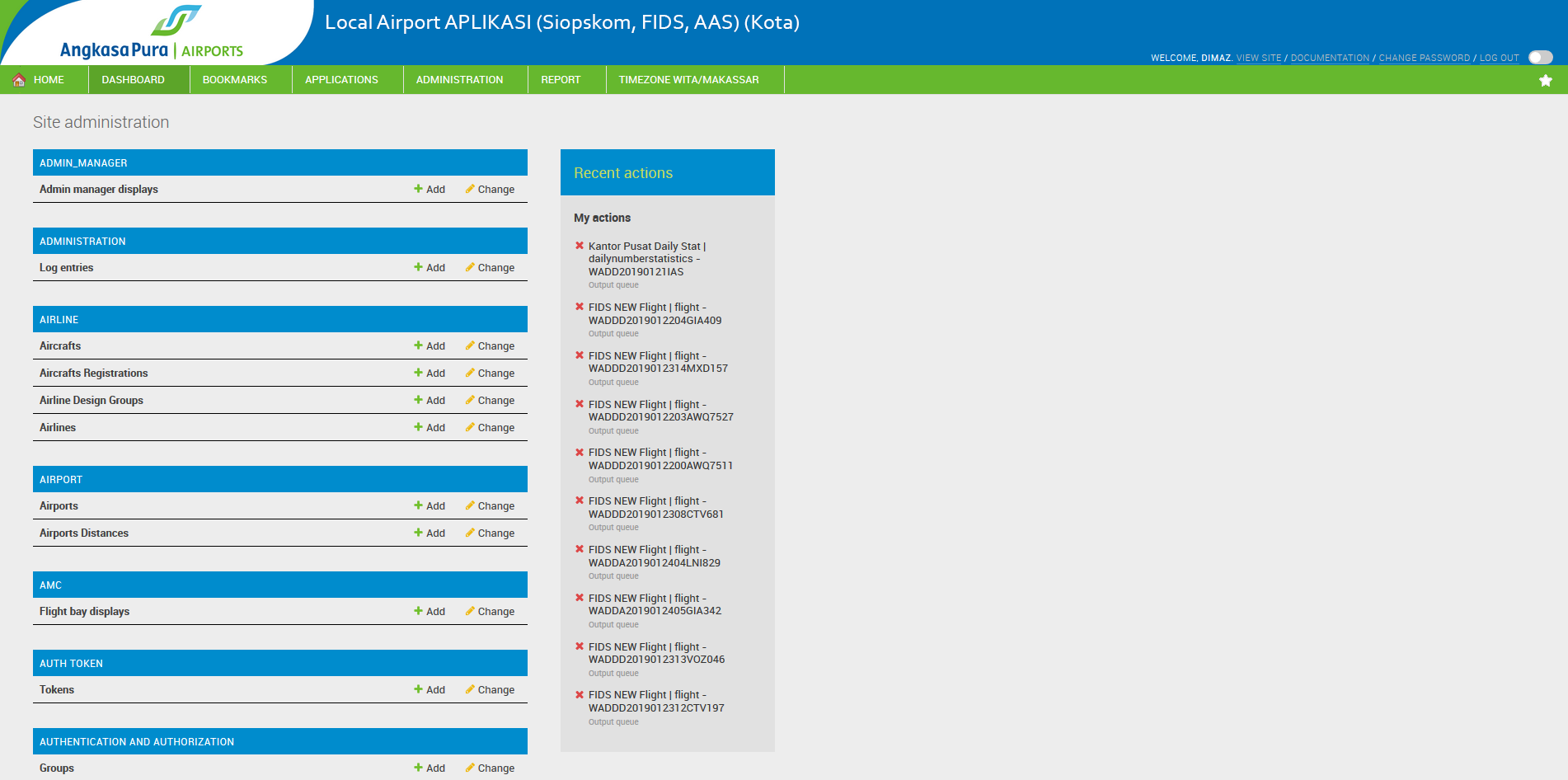 APPLICATIONS, merupakan menu bar (aplikasi) utama yang digunakan untuk menyimpan semua data keperluan bandara, baik itu berupa master data, untuk keperluan operational, dan post operational (billing). Beberapa sub menu penting dalam menu bar ini, antara lain: