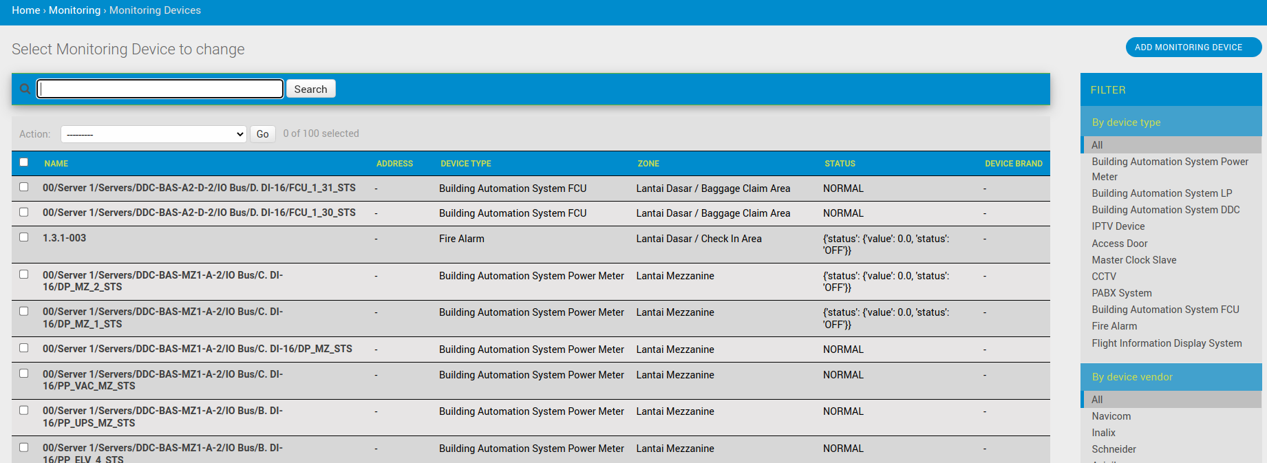 Data di atas menunjukkan detil device mulai nama device, IP address, device type, zona lokasi ditempatkannya device, device brand, dan status device.