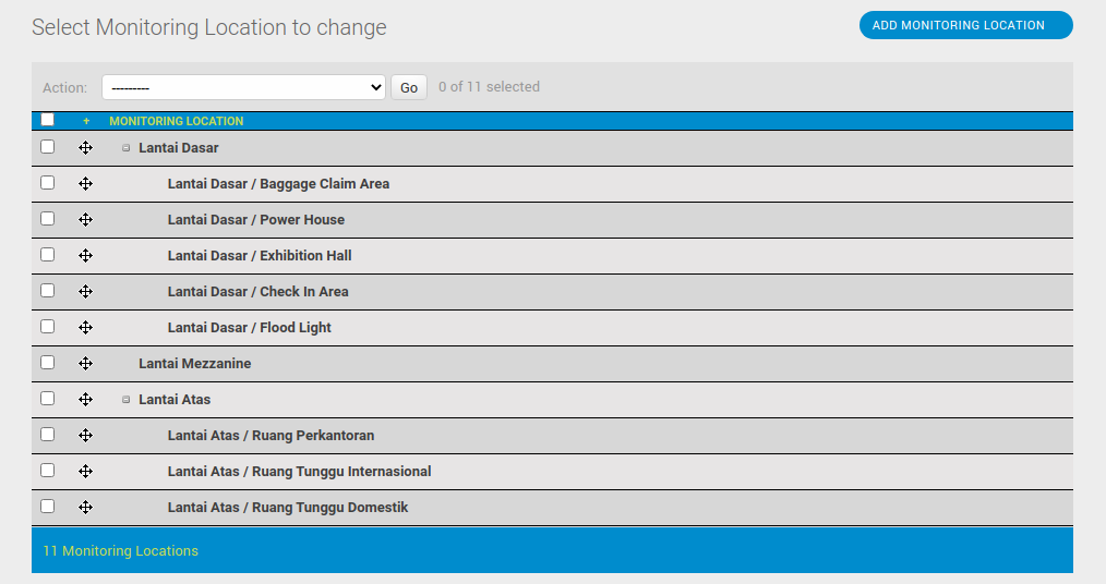 Monitoring location adalah sub modul monitoring yang digunakan untuk input lokasi/zona penempatan device di bandara.