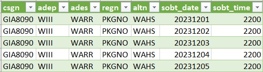 Atau langsung klik link berikut untuk download format csv untuk upload data over flight