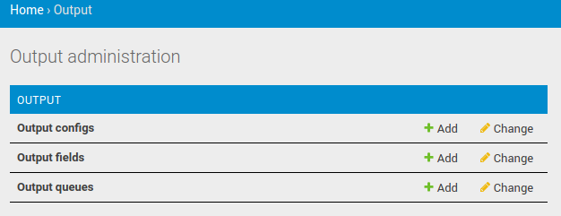 Klik Application >> Output, akan muncul halaman adminsite output seperti berikut.