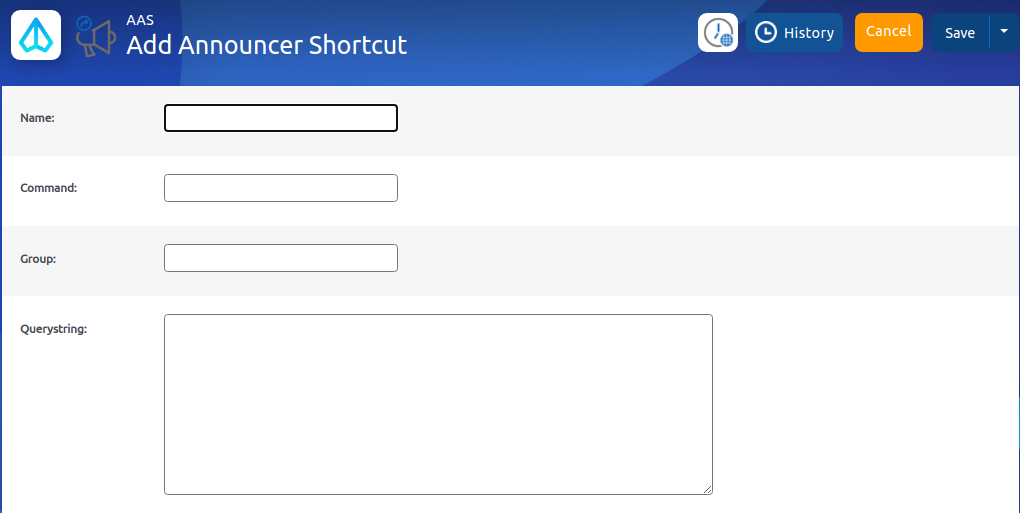 Announcer Shortcuts, digunakan untuk setup shortcuts announcer. Klik Application >> Plugin Announcer >> Announcer Shorcut akan muncul halaman seperti berikut. Untuk masuk ke halaman menu ini dapat dilakukan langkah seperti berikut:
