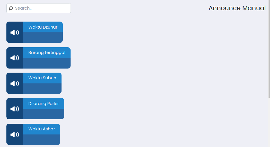 Modul Announce Manual, halaman frontend dengan tampilan shorcut-shorcut seperti button yang siap di play secara manual.