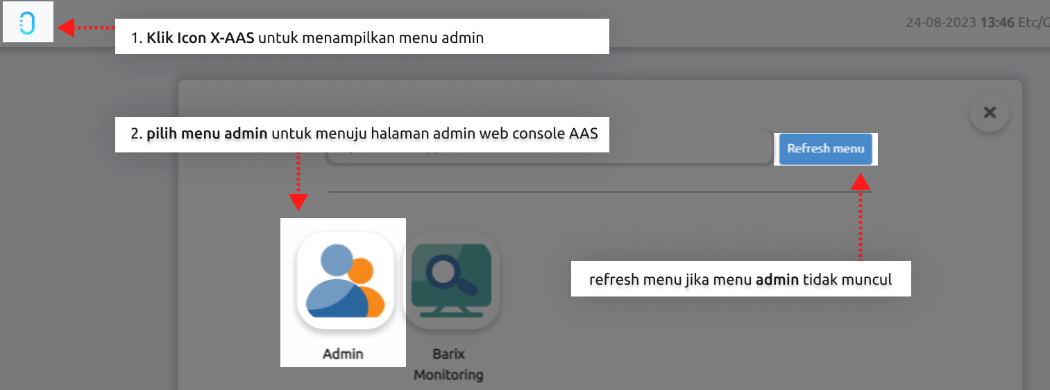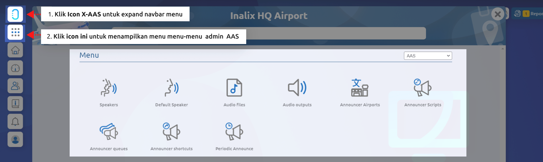 Lanjutkan langkah berikut untuk akses menu-menu AAS