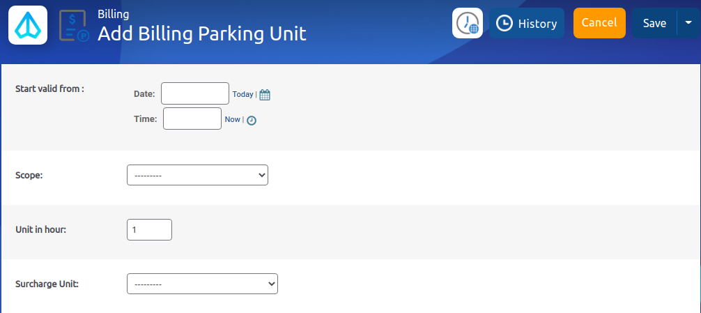 Mengubah Data Billing Parking Unit dapat dilakukan dengan cara klik salah satu data billing parking unit pada kolom start valid from >> edit data yang ingin diubah >> klik |save|