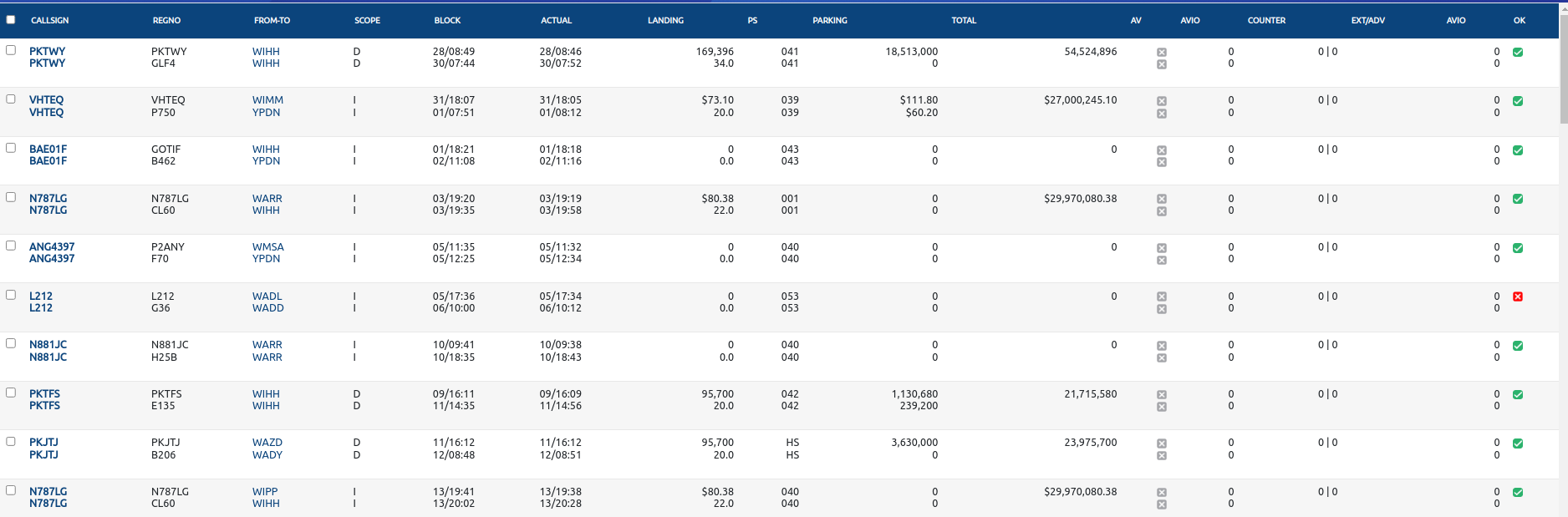 Data di atas adalah data flight dari unit operational yang berpengaruh terhadap nilai charge, dan juga sebagai syarat utama agar charge (billing charge) tercreate. Atau dengan kata lain, ketika data-data tersebut lengkap terisi (flight closed), maka pada modul ini akan otomatis create data charge dengan perhitungan otomatis sesuai rules charge di bandara. Jadi jika terdapat data yang belum masuk modul ini, dapat dikomunikasikan dengan unit operasi atau amc bandara.
