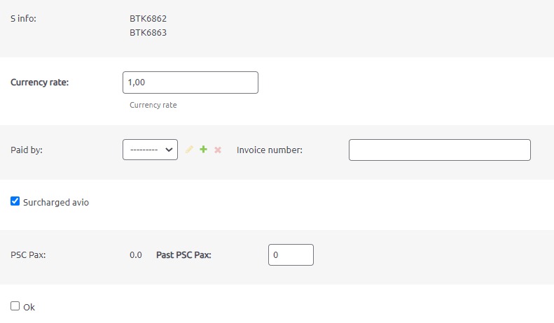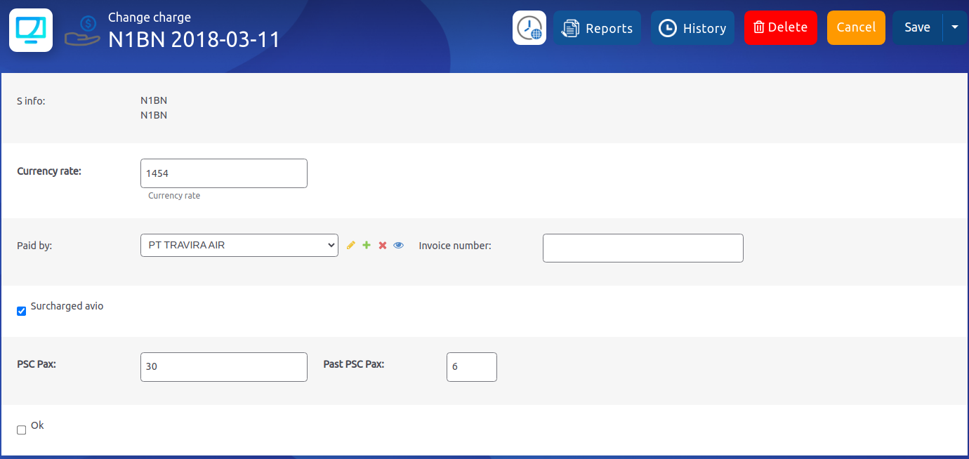 pilih flight yang berlaku 2 tarif charge (pax) >> muncul form seperti di bawah >> tuliskan jumlah pax yang diberlakukan tarif lama pada field past PSC charge
