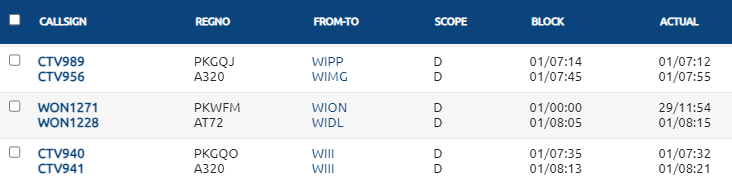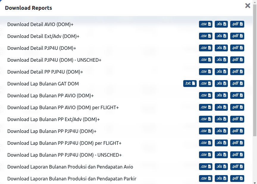 Tombol report akan muncul jika dan hanya jika minimum ada filter waktu penerbangan dan scope: