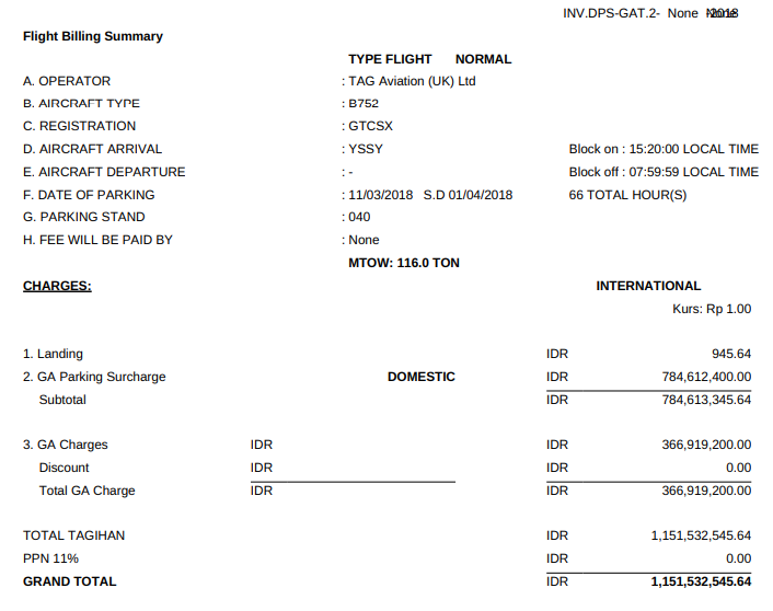 Jika biaya landing tidak sesuai, dapat dikomunikasikan juga dengan unit operasi untuk mengecek dan update MTOW djika dibutuhkan