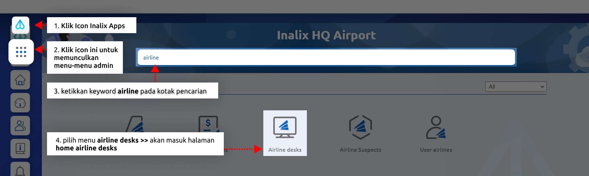 Untuk masuk ke menu airline desks dapat dilakukan dengan langkah seperti berikut: