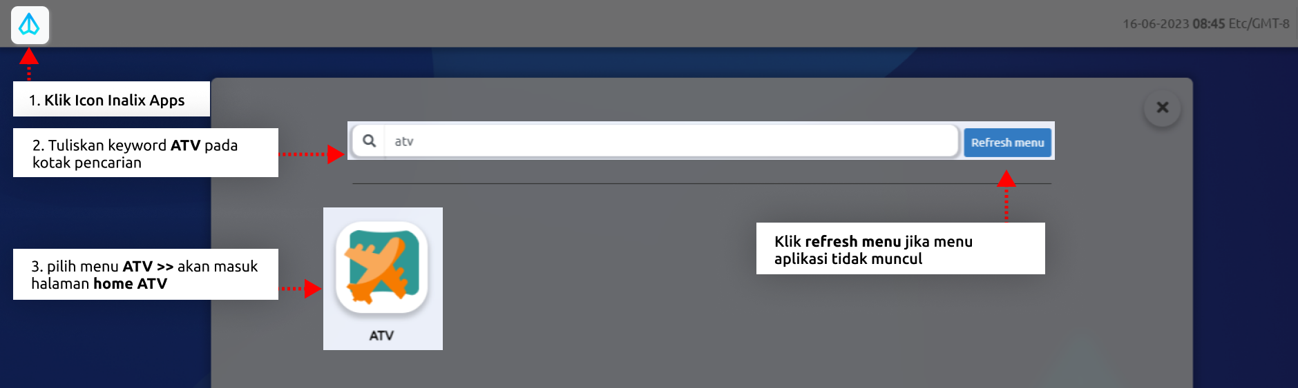 Untuk mengakses modul Aplikasi ATV dapat dilakukan seperti berikut: