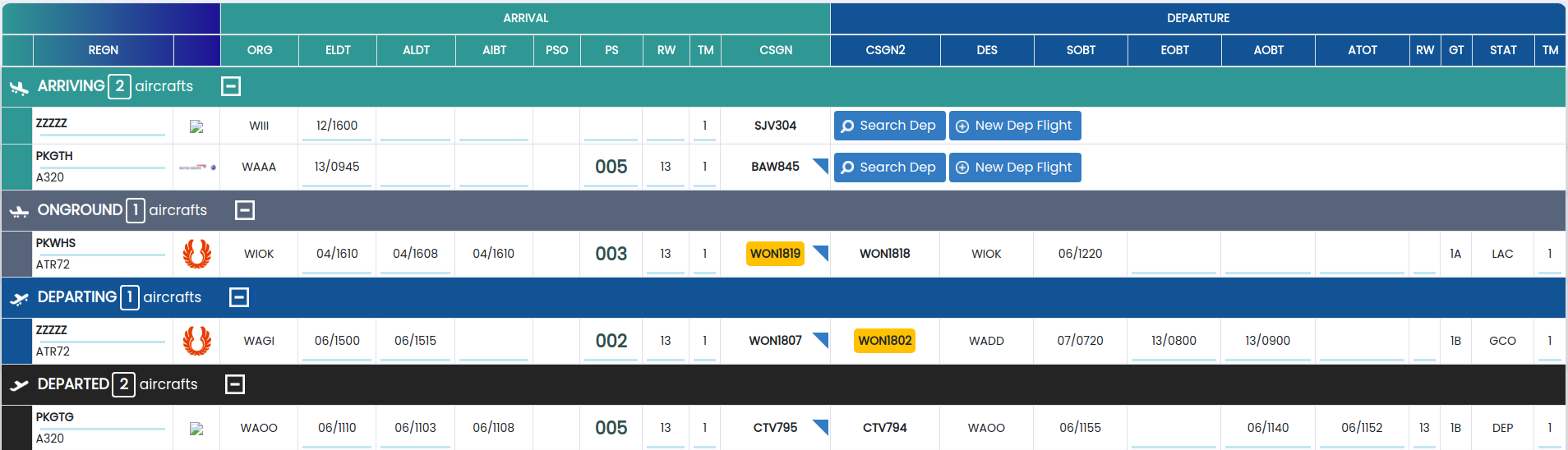 input ATOT, maka flight akan berpindah dari departing ke departed