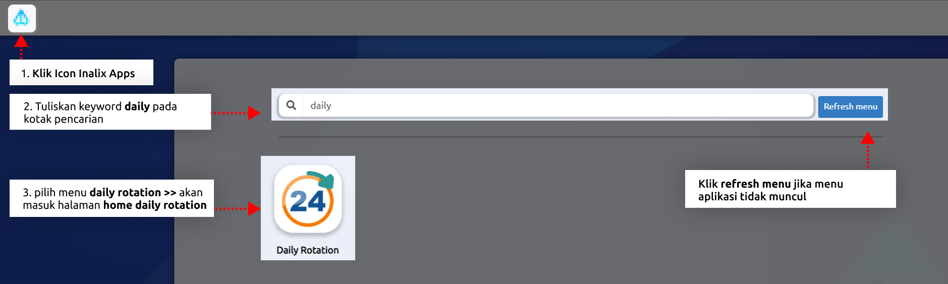 Untuk mengakses modul daily rotation, dapat dilakukan dengan langkah sebagai berikut