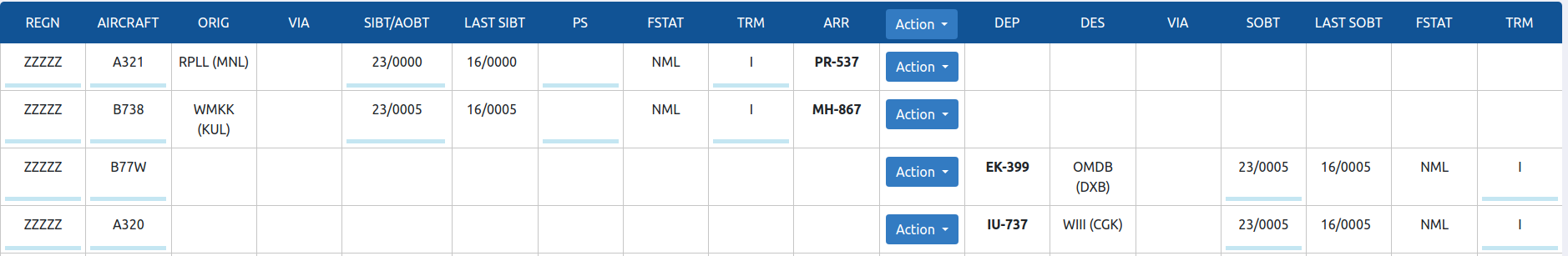 SIBT/AOBT, Schedule In Block Time/Actual Off Block Time (schedule flight hasil generate dari master schedule)