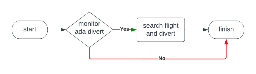 Sesuai penjelasan di atas, modul ini hanya diakses ketika ada penerbangan divert. Secara umum workflow penggunaan modul overflight dijelaskan seperti gambar berikut: