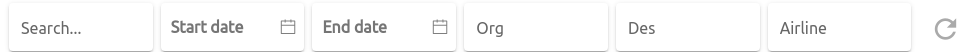 , untuk search berdasarkan keyword (airline, registration, atau callsign)Start Date dan End Date, untuk filter data berdasarkan durasi datetime