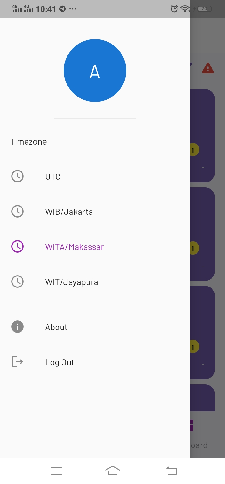 Setelah masuk, pastikan memilih timezone sesuai lokasi bandara (klik hamburger menu untuk pengaturan memilih timezone)