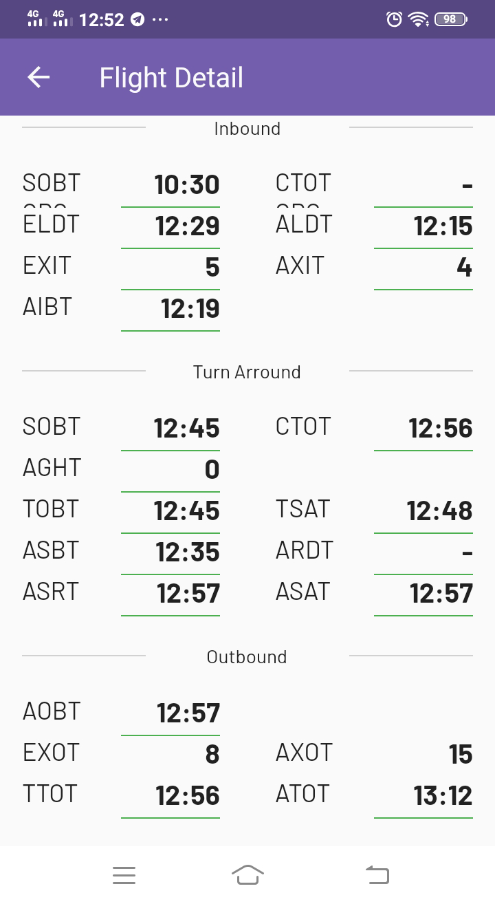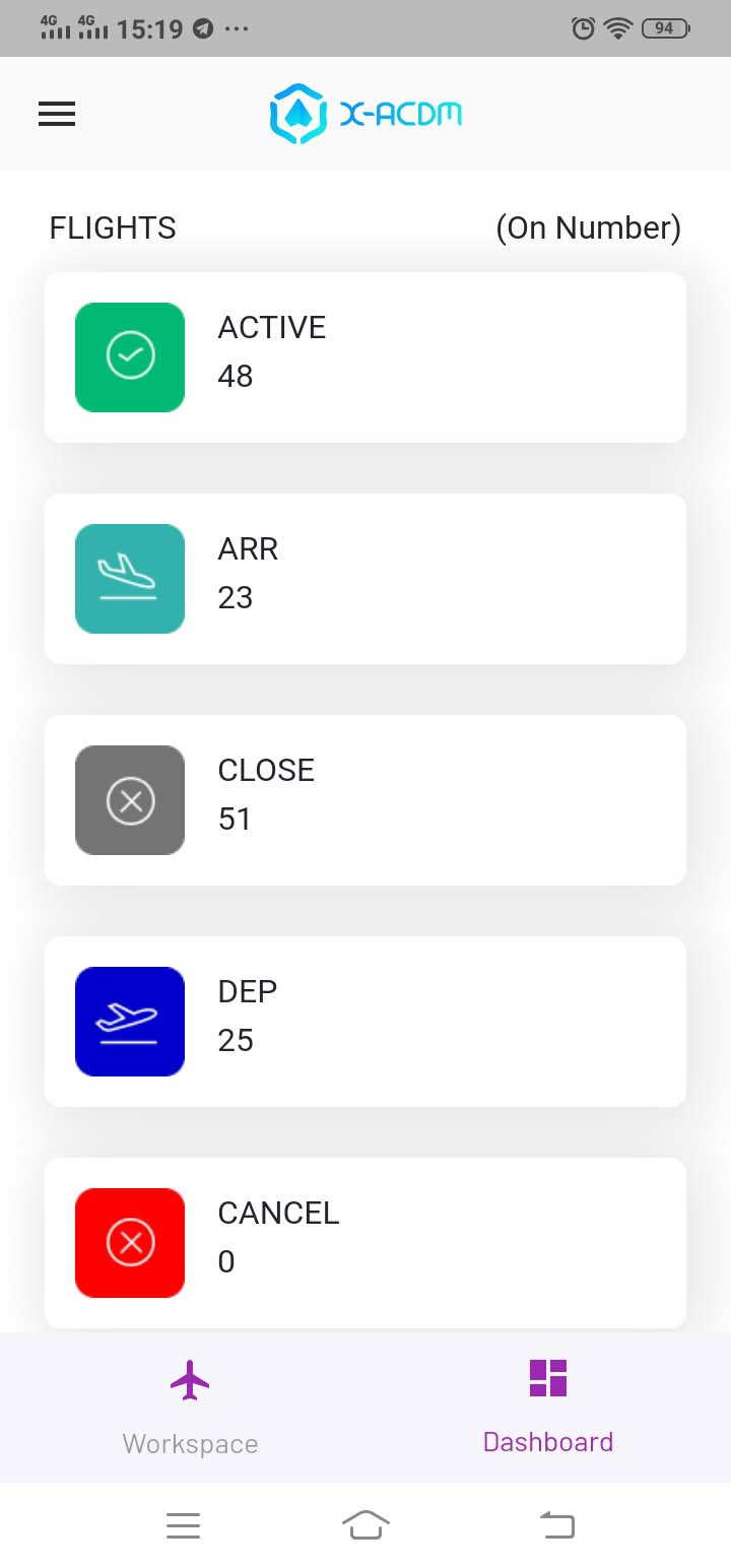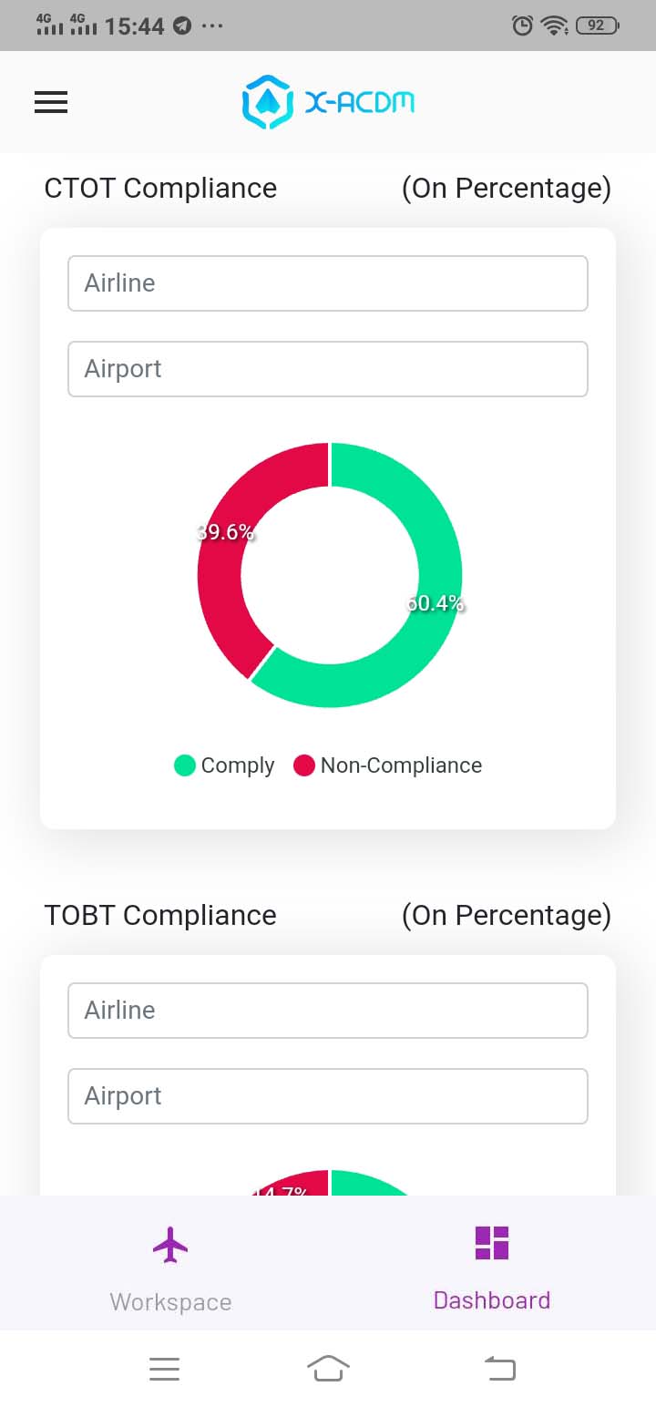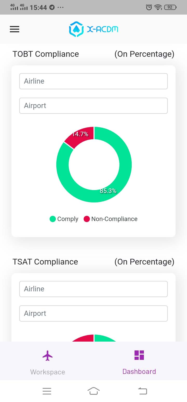 Dashboard-ACDM adalah modul aplikasi yang menampilkan data A-CDM dalam bentuk diagram dan grafik guna memudahkan dalam membaca dan analisis data flight A-CDM. Berikut tampilan dalam versi mobile