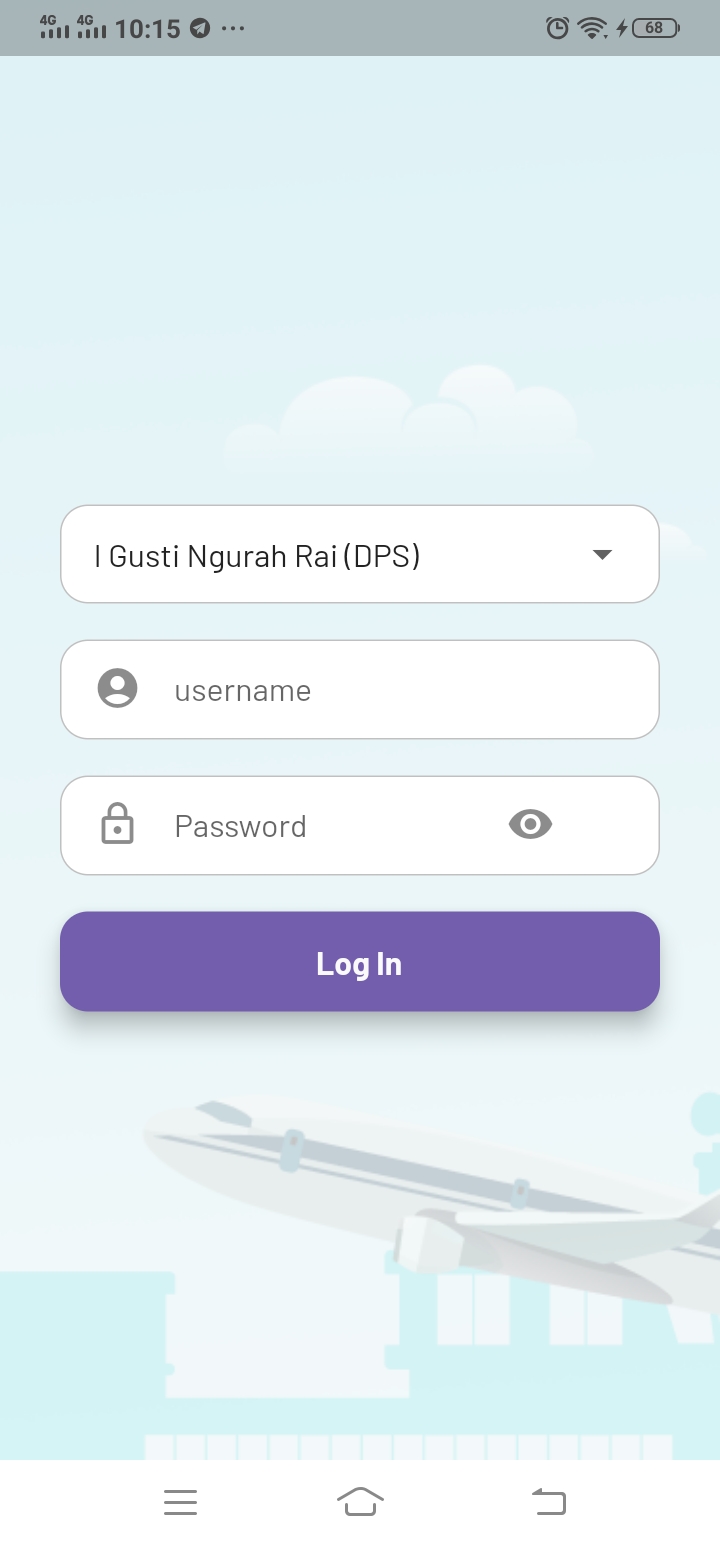 Untuk login aplikasi: pilih cabang bandara >> masukkan username >> password >> klik login