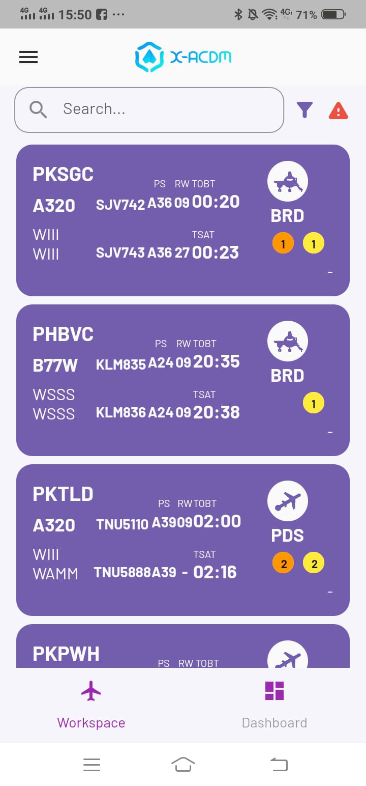 workspace menampilkan data flight A-CDM dalam bentuk card